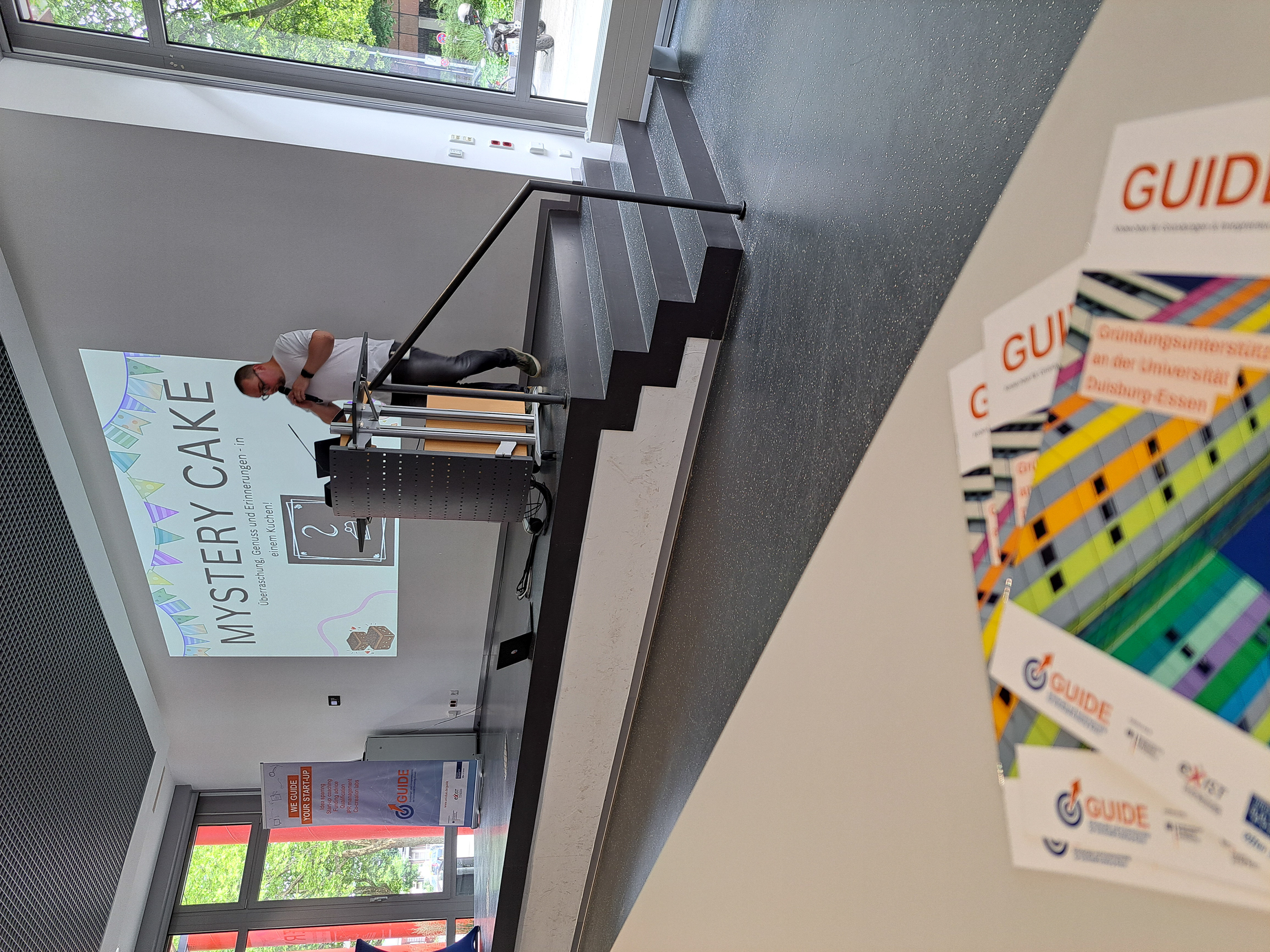 Essen, 18.08.2023 – Am 16.08.2023 setzte die Prämierungsfeier den erfolgreichen Endpunkt des ersten GUIDE Geschäftsideenwettbewerbs an der Universität Duisburg-Essen. Insgesamt wurden innerhalb der Bewerbungsfrist vom 2.5.-21.07.2023 17 vielversprechende Ideen von insgesamt 26 Teilnehmer:innen aus 8 Fakultäten eingereicht. Die Bandbreite der Geschäftsideen variierte von einem neuen „Fine“-Dining-Konzept, über eine App-Entwicklung zur gesundheitlichen und diagnostischen Aufklärung bis hin zu KI-generierten Bildern.