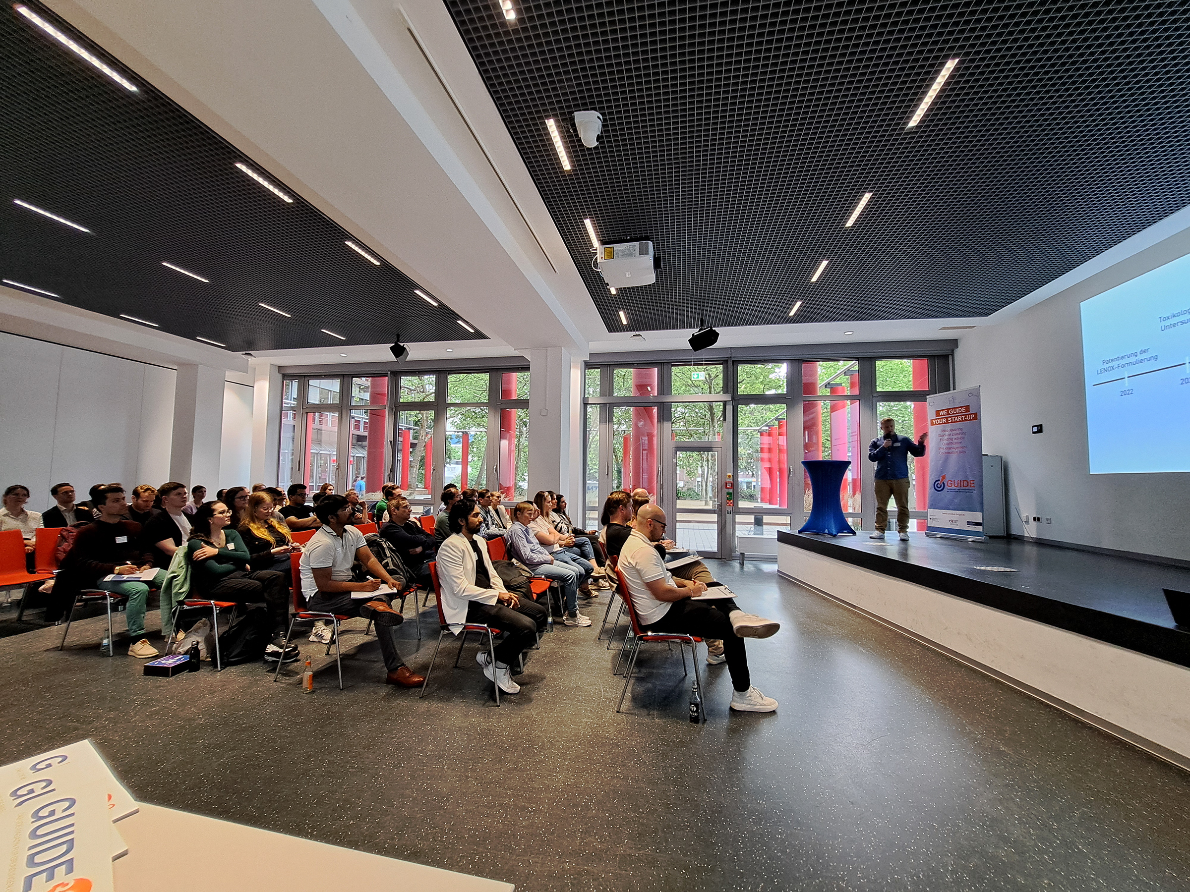 - Unterstützung und Preise: Auf die Gewinner:innen warten attraktive Sach- und Geldpreise, die GUIDE in Kooperation mit Partner:innen aus dem Start-up Ökosystem auslobt und die bei der Weiterentwicklung der Idee unterstützen. Zudem steht den Teilnehmenden das GUIDE-Team im Anschluss als Sparringspartner und Coach zur Seite, um das Vorhaben voranzubringen.