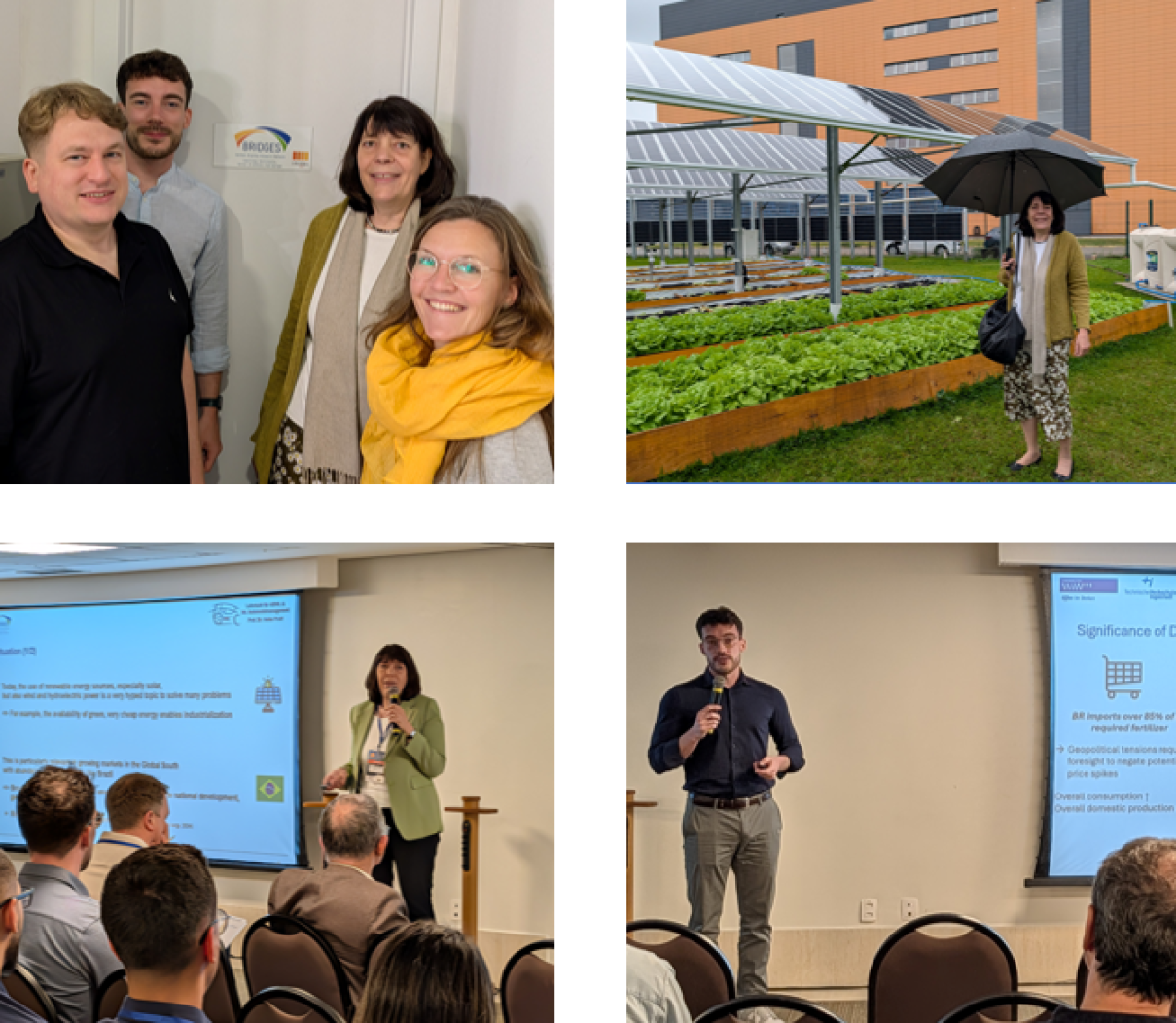 Im Anschluss besuchte das Team, begleitet von Arne Jeppe, die Universidade Federal de Santa Catarina (UFSC) in Florianópolis. Um die Zusammenarbeit vor Ort zu institutionalisieren, wurde am dortigen Fotovoltaica-Institut ein eigenes BRIDGES-Projektbüro eröffnet. Zudem besichtigte die Delegation die neuen Agrivoltaik-Anlagen des Instituts, die innovative Ansätze zur Kombination von Solarenergie, Landwirtschaft sowie der Produktion von Wasserstoff und Düngemitteln erproben.