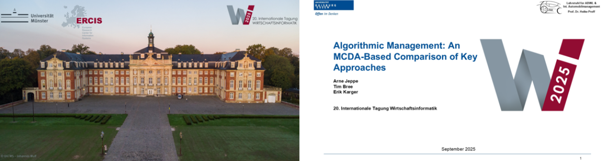 Der Konferenzbeitrag "Algorithmic Management: An MCDA-Based Comparison of Key Approaches" von Arne Jeppe, Tim Brée und Erik Karger wurde zur Präsentation auf der 20. Internationalen Tagung Wirtschaftsinformatik angenommen. Die Konferenz findet vom 13.-17. September 2025 statt.