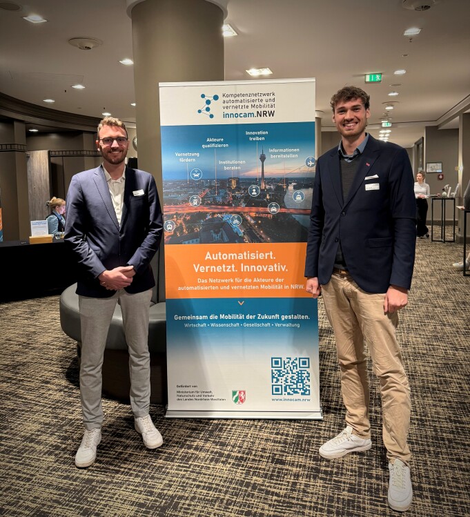 Auf dem InnoCam Mobility Meeting 2025 in Köln waren Max Eickhoff und Fabian Langanki im Austausch zu aktuellen Entwicklungen rund um die vernetzte Mobilität. Die Teilnahme diente insbesondere der Vernetzung für neue Forschungsprojekte und dem Dialog mit Vertreterinnen und Vertretern aus Kommunen und Unternehmen. Ein spannender Tag, der zeigt, wie entscheidend gute Zusammenarbeit für die Mobilität der Zukunft ist.