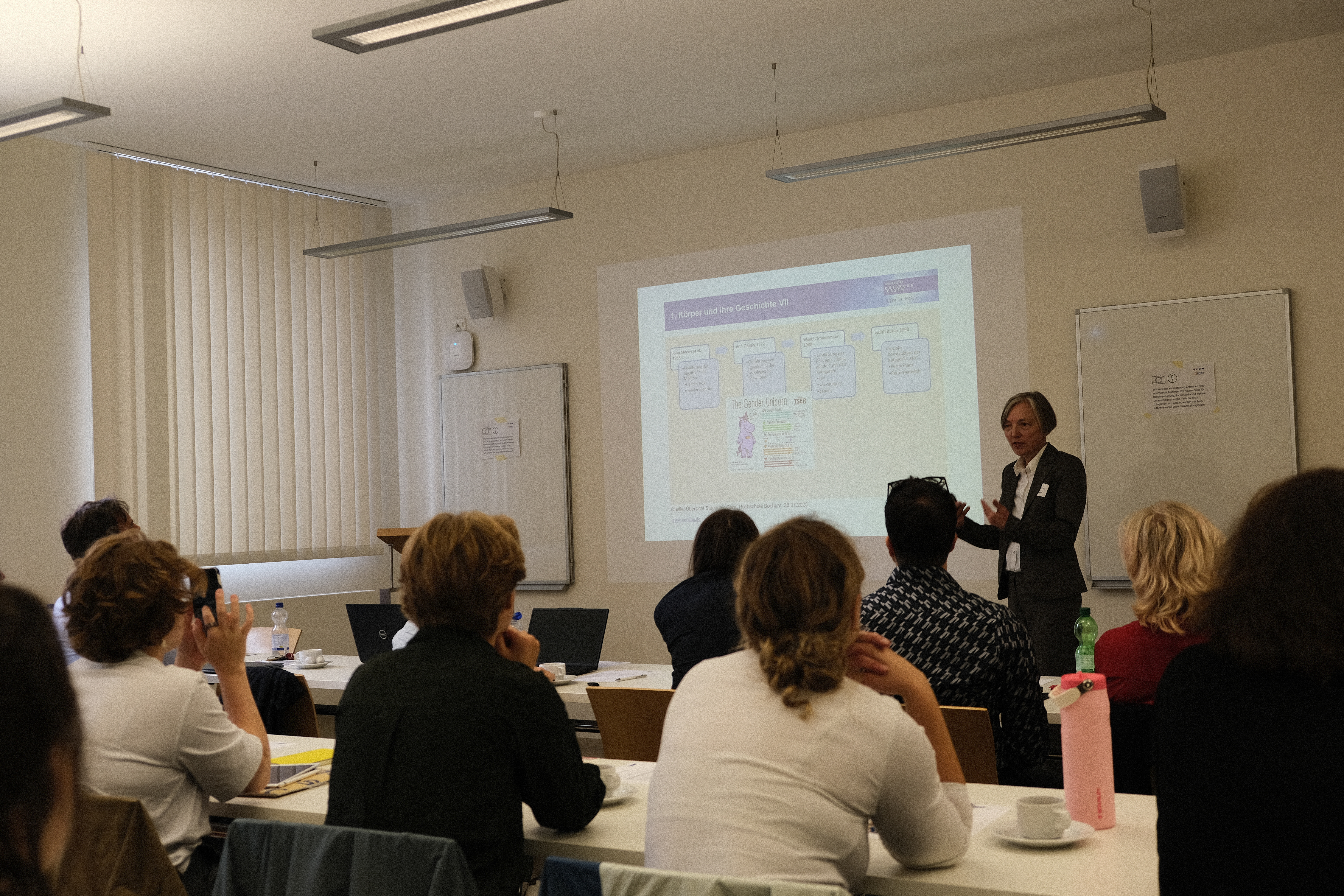 In den Arbeitsgruppen entwickelten die Teilnehmenden eigenständig Konzepte für Forschungsprojekte mit geschlechtersensiblem Bezug. Dazu formulierten sie Forschungsfragen, diskutierten geeignete Methoden und entwarfen erste Studienplän. Die Ergebnisse konnten am Ende der Woche vorgestellt und diskutiert werden.