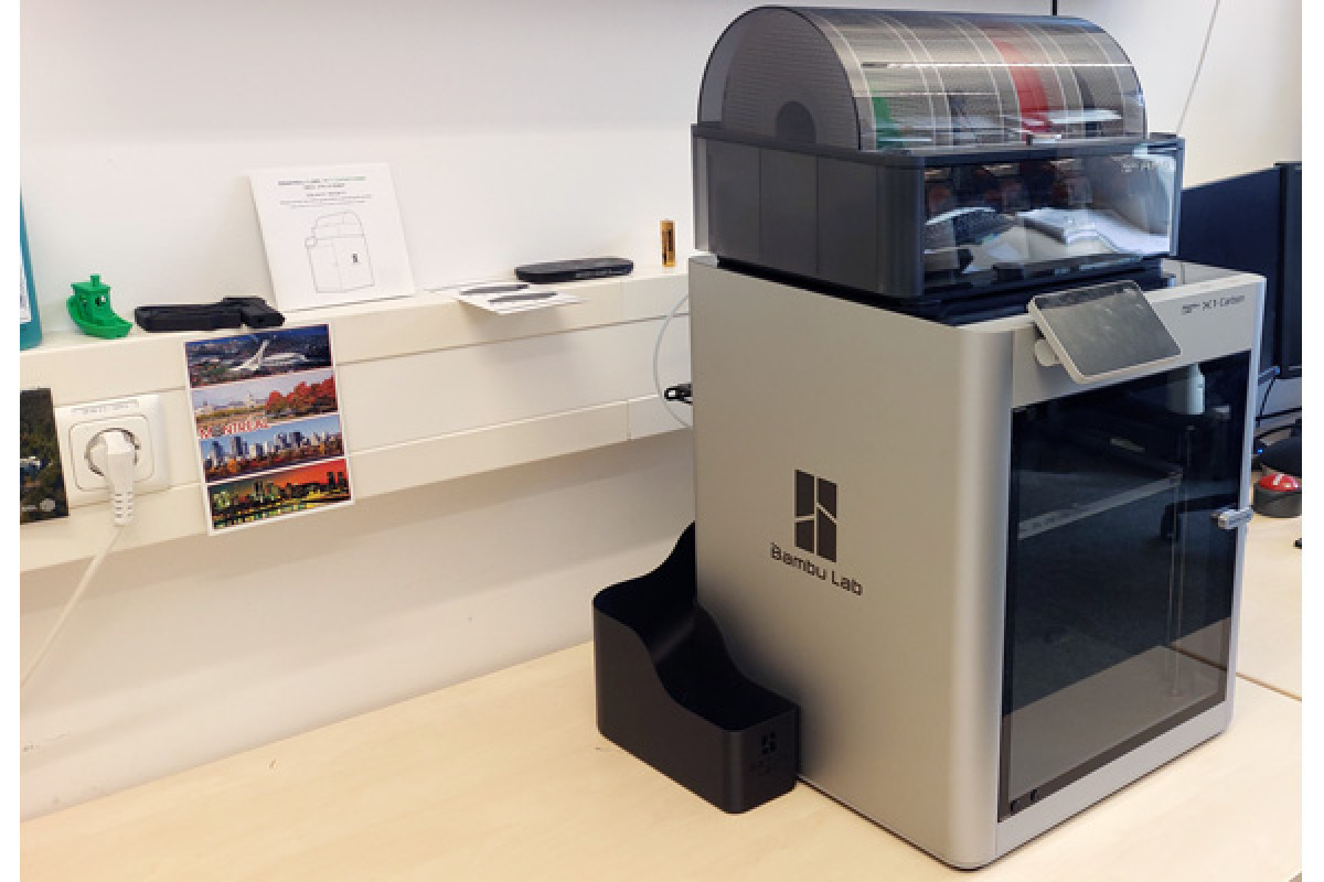 With this 3D printer we can produce three-dimensional prints even in colour. It allows us to print plastic lab supply material like self-designed stub holders for the REM or ibidi-dish holders for use in the centrifuge.