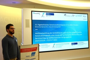 Mohammad Aljomaa, M.Sc., Wissenschaftlicher Mitarbeiter am Institut für Metall- und Leichtbau, stellte im Rahmen des Kolloquiums das IGF-Forschungsvorhaben „Weiterentwicklung der Kerbfallklassen nach EC3 für nichtgeschweißte Konstruktionsdetails unter Ansatz der synthetischen Wöhlerlinie unter Berücksichti-gung stahlbautypischer Fertigungspraxis (IGF-Nr. 01IF22531N – FOSTA-Nr. P1665)“ vor. Das Forschungsvorhaben wurde in erfolgreicher Kooperation mit dem Fraunhofer-Institut für Großstrukturen in der Produktionstechnik IGP in Rostock sowie dem Bereich Maschinenbau/Verfahrens- und Umwelttechnik der Hochschule Wismar im Zeitraum vom 01.12.2022 bis 30.11.2025 durchgeführt.