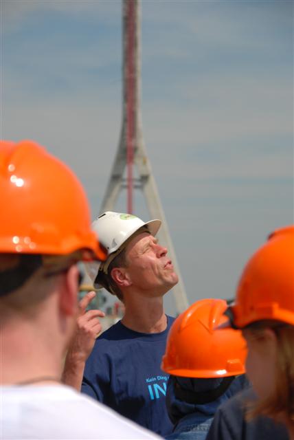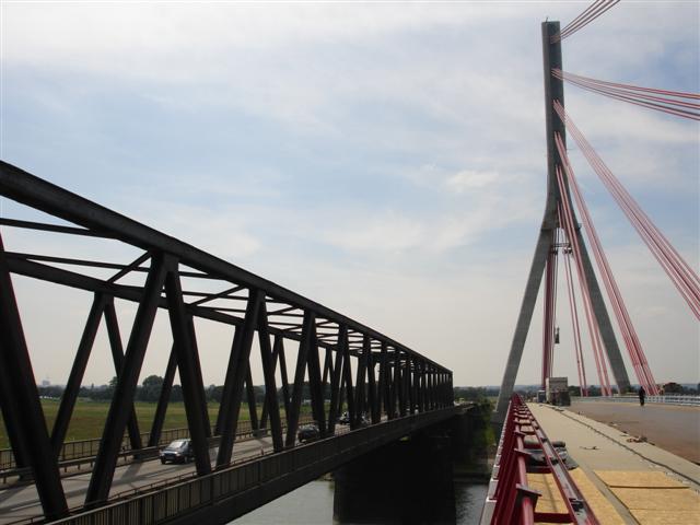 Zum zweiten Male und erneut bei hervorragendem Wetter besuchte das Institut für Metall- und Leichtbau mit seinen Studierenden am 17. Juni 2009 die Baustelle der neuen Rheinbrücke bei Wesel. Die Einleitung in den Besuch gestaltete unser Gastgeber, der Landesbetrieb Straßenbau Nordrhein-Westfalen vertreten durch Herrn Dipl.-Ing. Dipl.-Wirt.-Ing. Helmut Reinsch, mit einem Vortrag über den vorhandenen Zustand der überlasteten, bestehenden Rheinquerung und die entlastende Lösung durch den Brückenneubau. Die Verkehrsanbindung der Rheinbrücke samt zukünftiger Ortsumgehung der Stadt Wesel waren ebenso Teil seiner Ausführungen wie auch technische Details zur Brückenform, zu der Gründung, den Querschnittsformen des Überbaus und den Abspannungen durch Litzenbündel. Die Darstellung der Bauabläufe wie auch beispielhafter (und beispielloser) Erfahrungen mit dem Einziehen der Litzen oder der Verwendung von hochfestem Beton konnte die Zuhörer faszinieren und manches Mal durch die unterhaltende Art des Vortragenden zum Schmunzeln bringen. Die Interaktivität des Vortrags durch herausfordernde Fragen sowie die ermunternde Ansprache zum Selbstverständnis manches Bauingenieurs in seinem Beruf waren unserem Zuhörerkreis geradezu maßgeschneidert. Mit viel Elan ging es darauf zur Besichtigung der Brücke. Dabei konnte auch der aktuelle Oberflächenzustand des stählernen Überbaus in unterschiedlichen Phasen besichtigt werden. Eine Begehung des Pylons und des Innern der Brückenquerschnitte blieb der großen Besuchergruppe leider verwehrt, was der überaus gelungenen Exkursion aber keinen Abbruch tat. Ein besonderer Dank gilt dazu nochmals Herrn Dipl.-Ing. Dipl.-Wirt.-Ing. Helmut Reinsch.