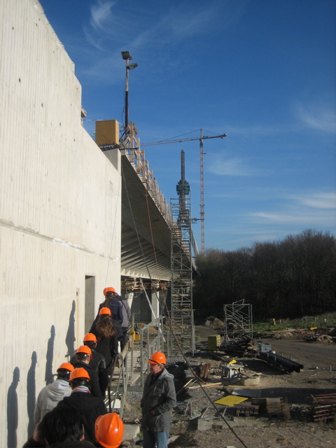 Bei gutem Wetter wurde der Neubau der Rheinbrücke in Wesel von ca. 40 Studenten besichtigt. Nach einer kurzen Erläuterung seitens der Bauaufsicht über Konstruktion und Material der Brücke, ist der vorhandene Brückenabschnitt oberhalb begangen worden. Ebenfalls war ein Einblick in den Kern der Brücke möglich.