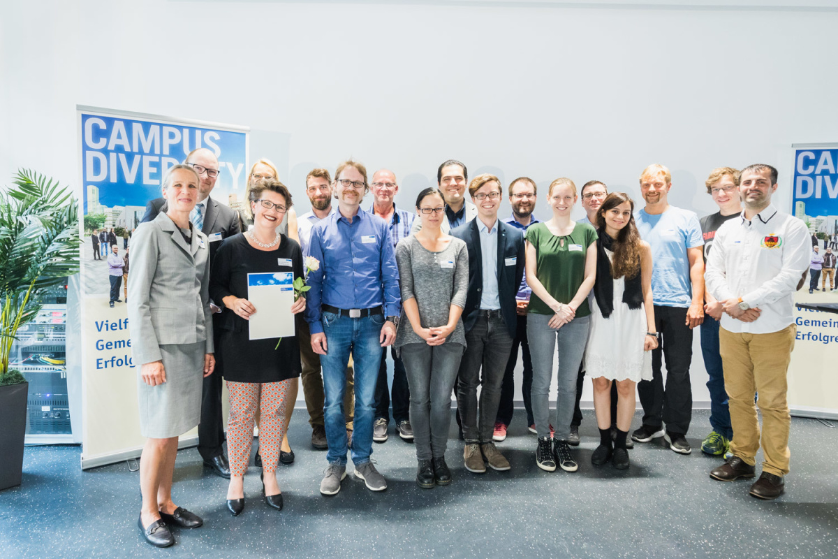 Die Preisverleihung durch Professor Barbara Buchenau, Prorektorin für Gesellschaftliche Verantwortung, Diversität & Internationalität der Universität Duisburg-Essen, fand am 5. Juni 2018, dem Deutschen Diversity Tag, im Glaspavillon am Campus Essen statt. Die Laudatio wurde von Dr.-Ing. Dominik Jungbluth gehalten. Das komplette Team des Instituts für Metall- und Leichtbau war bei der Preisverleihung dabei.
