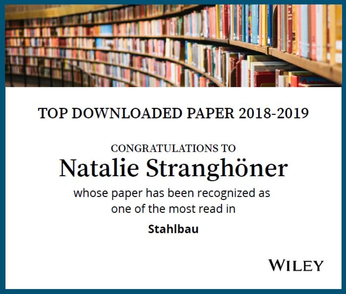 Mai 2020Zwei wissenschaftliche Veröffentlichungen in der Zeitschrift STAHLBAU unter den Top 10%