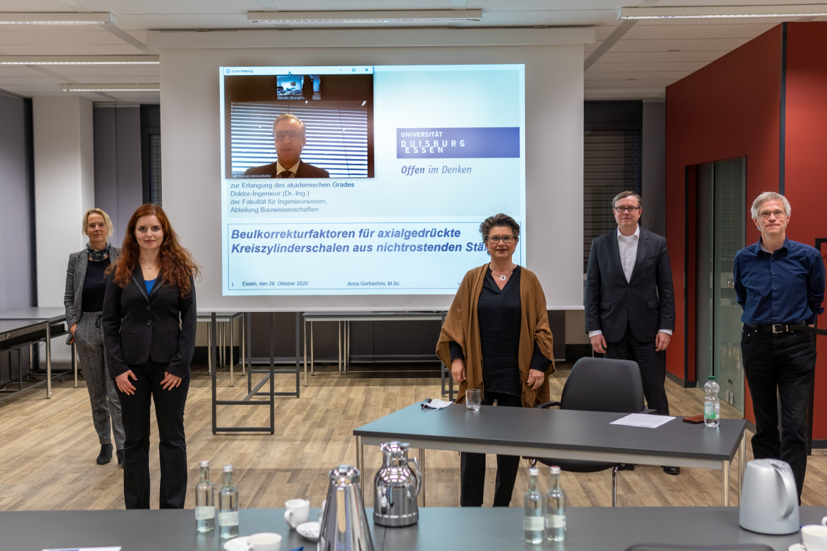 Anna Gorbachov M.Sc., ehemalige Wissenschaftliche Mitarbeiterin am Institut für Metall- und Leichtbau der Universität Duisburg-Essen, hat am 28. Oktober 2020 erfolgreich ihre Promotion zum Thema „Beulkorrekturfaktoren für axialgedrückte Kreiszylinderschalen aus nichtrostenden Stählen“ mit ihrer Disputation bestehend aus einem Vortrag und anschließender Prüfung abgeschlossen.