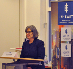 Außerdem jährte sich zum 20. Mal die Gründung des Instituts für Ostasienwissenschaften als Zentralinstitut der Gerhard-Mercator-Universität Duisburg (später: Universität Duisburg-Essen). Karen Shire referierte, wie es dazu kam und welche Entwicklungen und Herausforderungen das IN-EAST seitdem genommen und gemeistert hat.