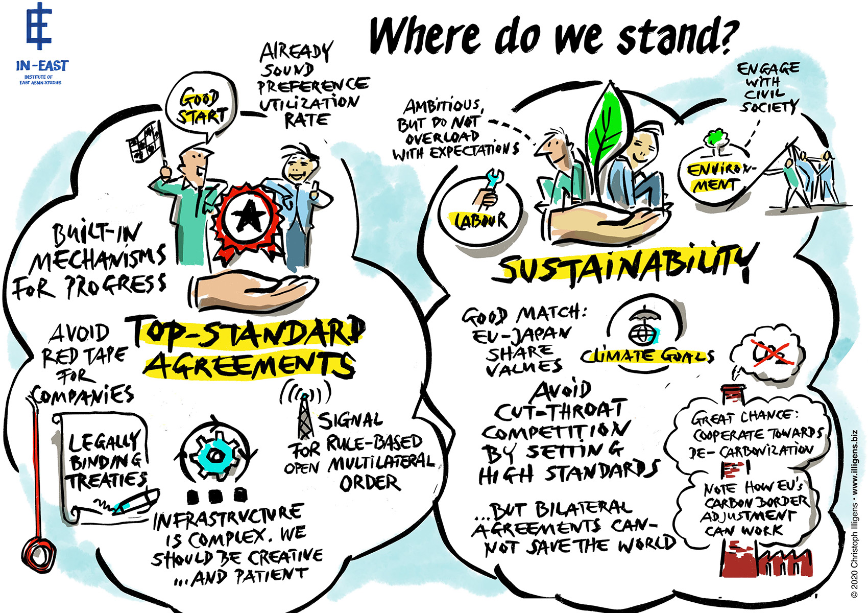The EU-Japan Economic Partnership Agreement (EPA) entered into force on 1 February 2019. After some time has lapsed, the conference has shed light on the first experiences and on outlining future-oriented perspectives for deepening the bilateral economic cooperation between Japan and the EU further. One issue for the discussion was the question what impact the current COVID-19 pandemic might have had.