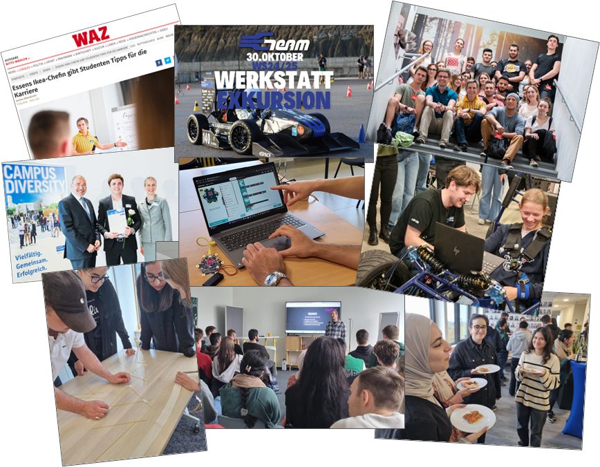Und so kann es aussehen, wenn man als Peer-Learning-Gruppe gemeinsam die ersten Schritte beim Programmieren macht, in einer Gruppe bei einer Exkursion erlebt, wieviel Informatik in einem Rennwagen steckt oder für sein ehrenamtliches Engagement im Rahmen des Mentorings von der Uni ausgezeichnet wird. Wann sind Sie dabei? ;-)