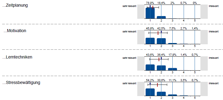 Wir sind der Überzeugung, dass Sie am besten wissen, was Sie brauchen. Daher haben Sie regelmäßig die Möglichkeit, Themen für zukünftige Workshops vorzuschlagen. Ebenso stellen wir im Nachhinein sicher, dass die behandelten Themen eine sehr deutlich erkennbare Relevanz besitzen, wie etwa hier im Rahmen des Kurses "Lern- und Selbstmanagement" im Wintersemester 2019/20: