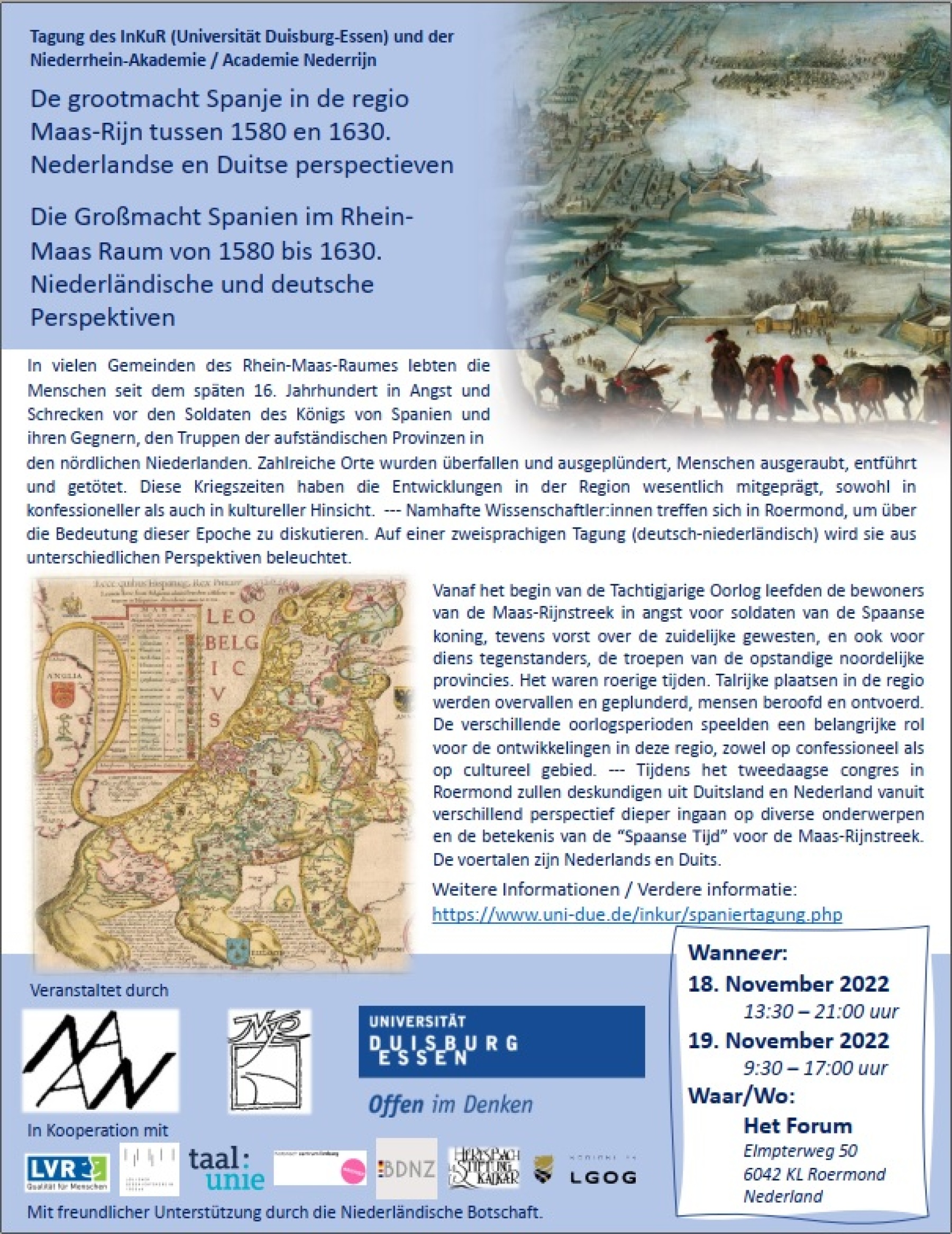 Am 18. und 19.11.2022 fand in Roermond unsere Tagung zur Großmacht Spanien in der Rhein-Maas-Region statt