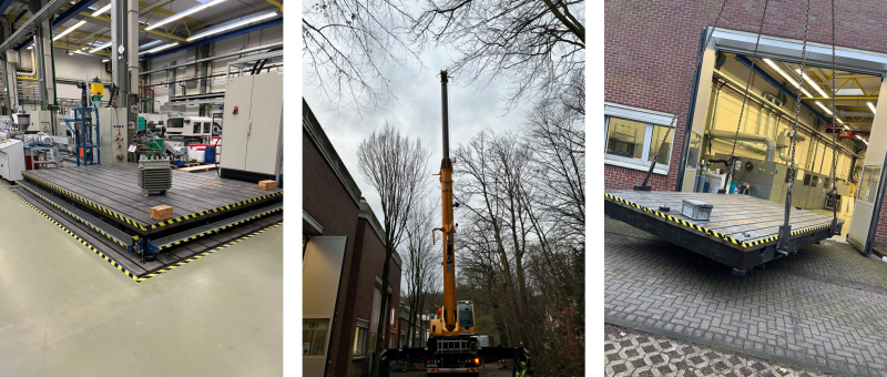Im Rahmen des Aufbaus unseres Kunststoff-Kreislauflabors im Technikum haben wir erfolgreich Platz für neue Maschinen und Anlagen geschaffen. Ein über 10 Tonnen schweres Prüffeld wurde mit einem Schwerlasttransport abgeholt, um Raum für zukunftsweisende Technologien zu schaffen.