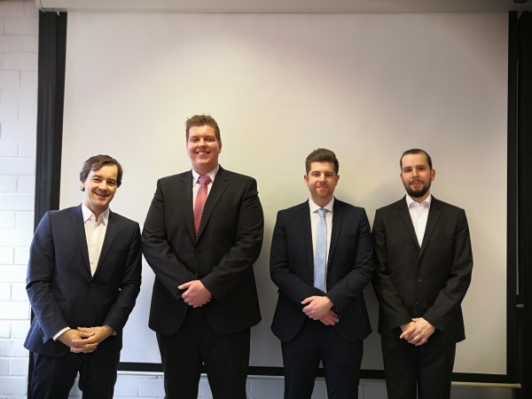 Foto v.l.n.r.: Prof. Dr.-Ing. Arun Nagarajah, Prof. Dr.-Ing. Reinhard Schiffers, Dr.-Ing. Moritz Rayer, Prof. Dr.-Ing. Bodo Fiedler