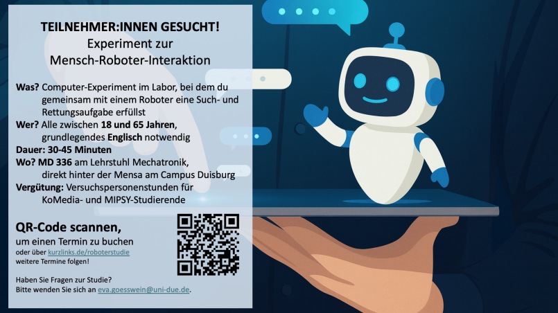 Das Fachgebiet Allgemeine Psychologie: Kognition der Universität Duisburg-Essen sucht Studienteilnehmer:innen