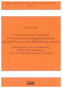 Verena Schütte 17 Hz machen einen Unterschied: Die Stimme der als managementkompetent geltenden Frau ist in ihrer Wahrnehmung männlich 222 Seiten, 49,80 Euro. ISBN 978-3-8440-1986-5 |