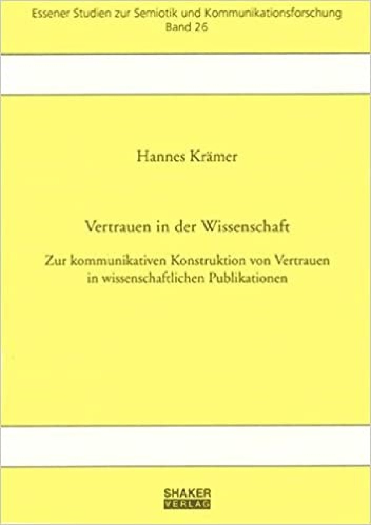 Vertrauen in der Wissenschaft. Zur kommunikativen Konstruktion von Vertrauen in wissenschaftlichen Publikationen. Essener Studien zur Semiotik und Kommunikationsforschung. Band 26, Aachen: Shaker, 155 Seiten,