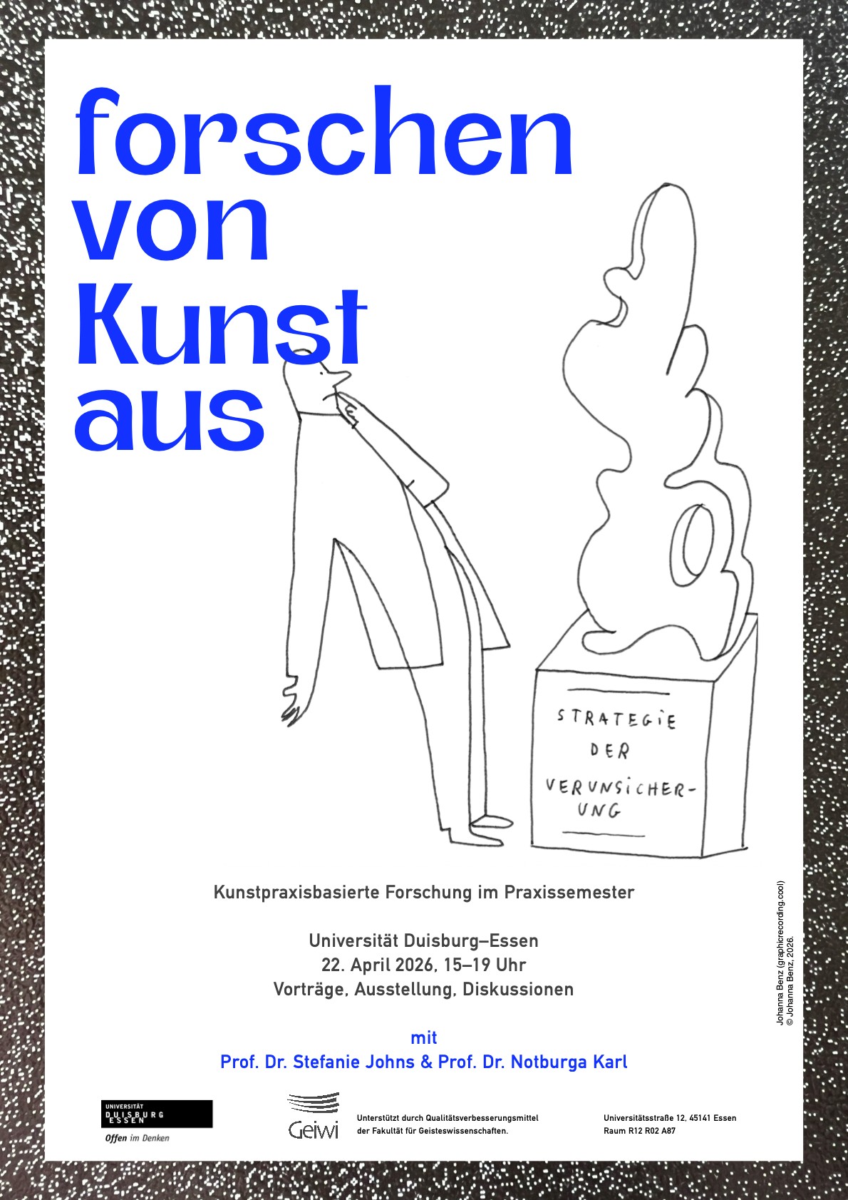 Am Mittwoch, 22.04.2026 findet im Arbeitsbereich „Kunstpädagogik/ Didaktik der Kunst" die Veranstaltung „forschen von Kunst aus“ statt.