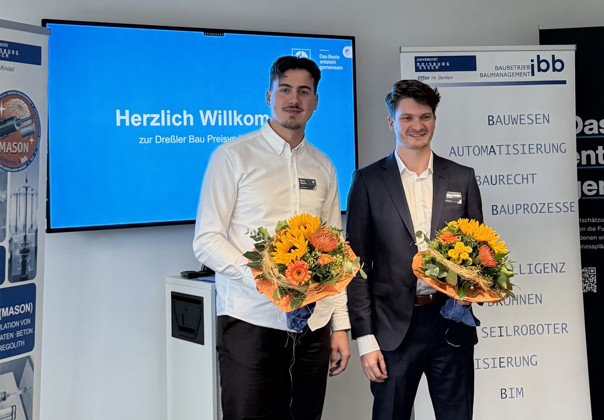 In diesem Jahr hat die Essener Niederlassung der Dreßler Bau GmbH zum zweiten Mal den Dreßler Bau-Preis vergeben. Mit dieser Auszeichnung und dem zugehörigen Preisgeld wurden zwei herausragende Bachelorarbeiten aus den Bereichen Baubetrieb und Massivbau geehrt.