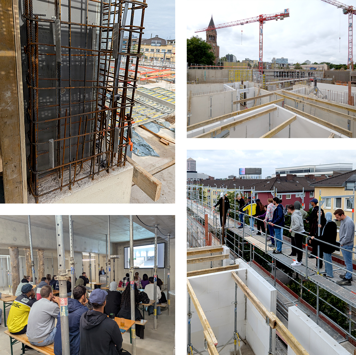 Die Studierenden wurden über die Baustelle geführt, wobei viele planerische Aspekte vermittelt werden konnten. Außerdem erhielten die Studierenden sehr schöne Einblicke in Konstruktionen, welche während des Studiums behandelt worden sind.
