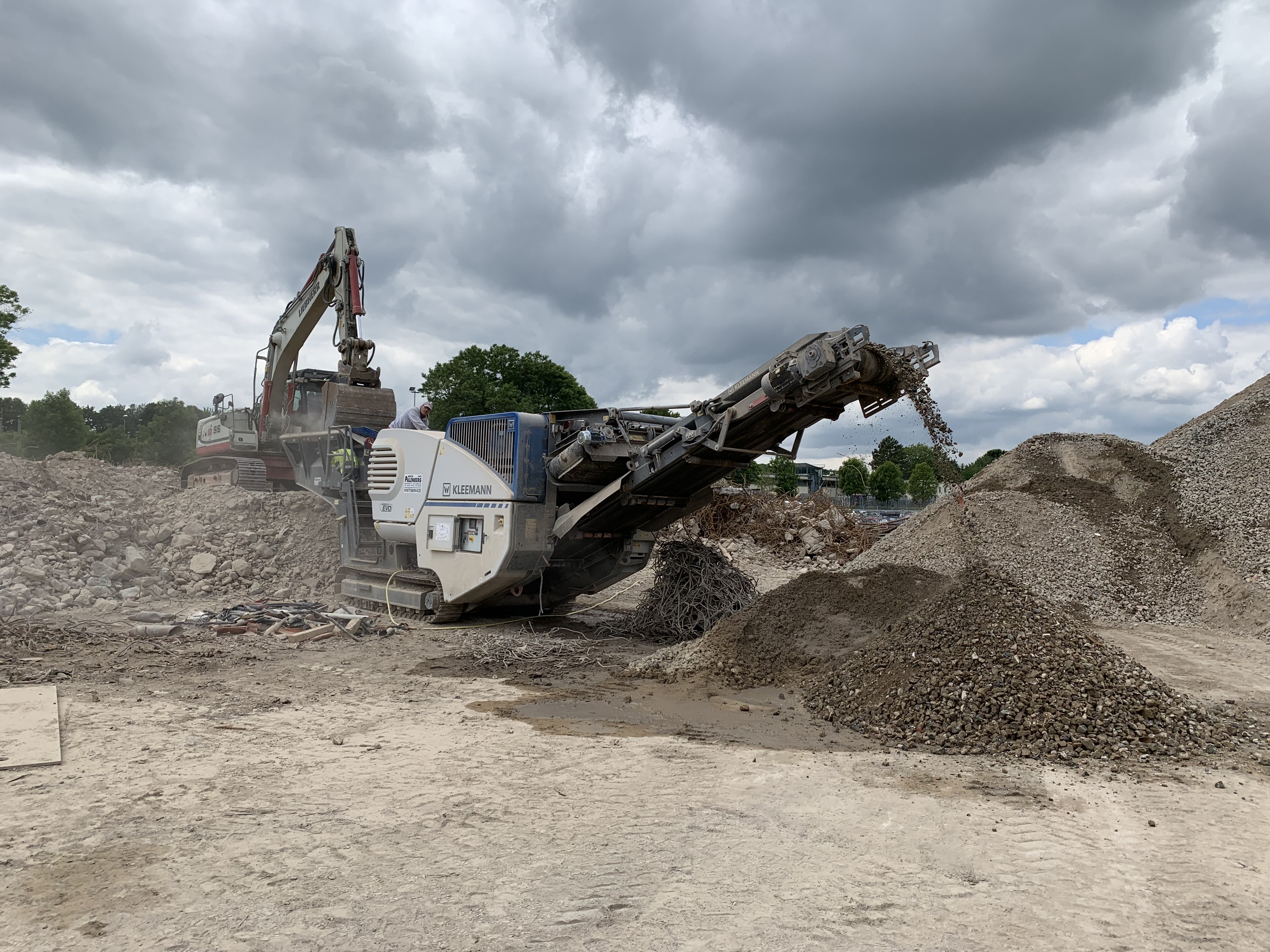 Eine zweite Reise fand am 30.05.2022 auf den Bendplatz in Aachen statt. Hier wurde das eingesetzte Gerät zum brechen des Abbruchbetons und das Abbruchmaterial sorgfältig betrachtet und untersucht. Außerdem wurden zwei LKW´s Abbruchmaterial beladen, um 20 Tonnen des Abbruchmatereials nach Essen und 20 Tonnen zu unserem Projektpartner nach Freiberg in Sachsen ans Institut für Aufbereitungsmaschinen und Recyclingsystemtechnik (IART) zu liefern.