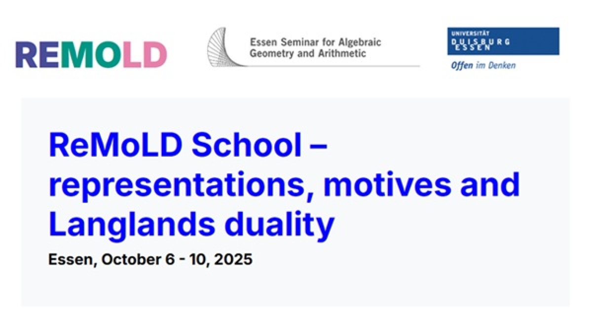 From October 6 to 10, the ReMoLD School - representations, motives and Langlands duality took place in Essen. This was the opening school of the MSCA Doctoral Network ReMoLD.