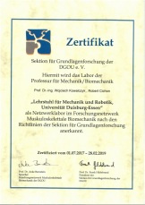 Der Lehrstuhl für Mechanik und Robotik der Universität Duisburg-Essen ist nun auch von der Sektion Grundlagenforschung der DGOU e.V. als Netzwerklabor im Forschungsnetzwerk MSB-Netnach den Richtlinien anerkannt worden.