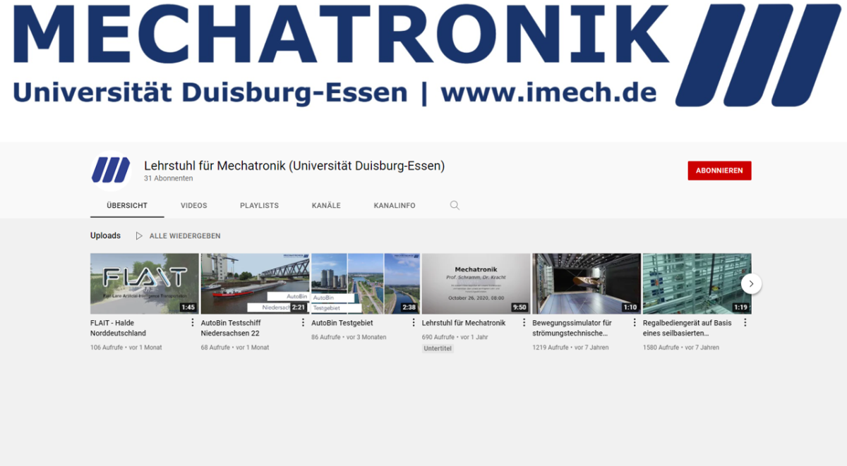 YouTube Channel des Lehrstuhls für MechatronikBleiben Sie auf dem Laufenden!