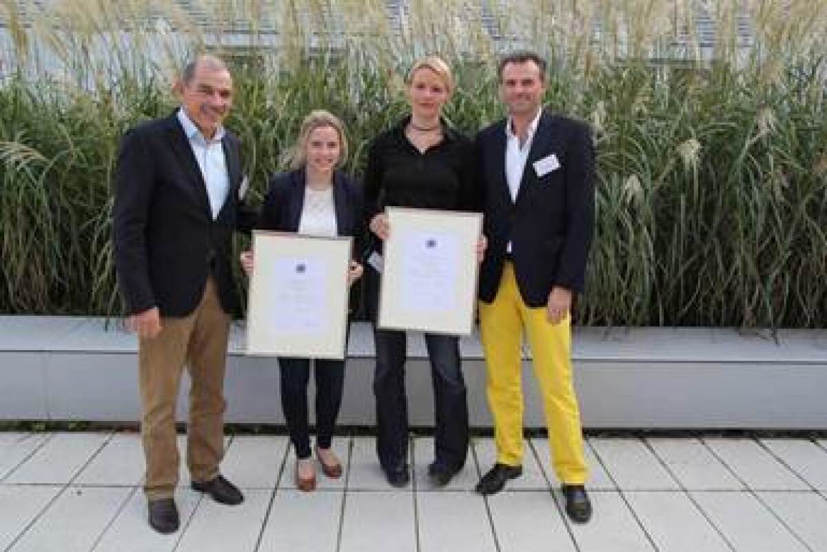 Bild von der Preisverleihung: v.l. Tagungspräsident R.-D. Kortmann, die Preisträger T. P. Ringbæk, C. Schröder, S. de Leve, DEGRO Präsident W. Budach