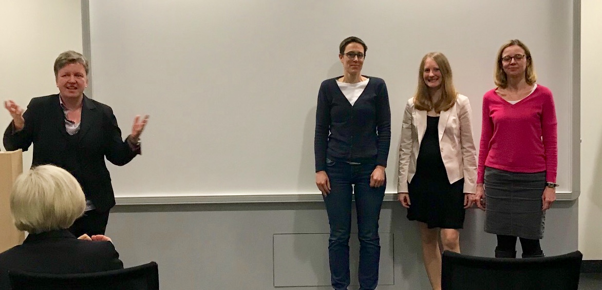 Prof. Dr. Anke Hinney (links), Gleichstellungsbeauftragte der Medizinischen Fakultät, mit einigen der ehemaligen Teilnehmerinnen am Josepha und Charlotte von Siebold-Programm