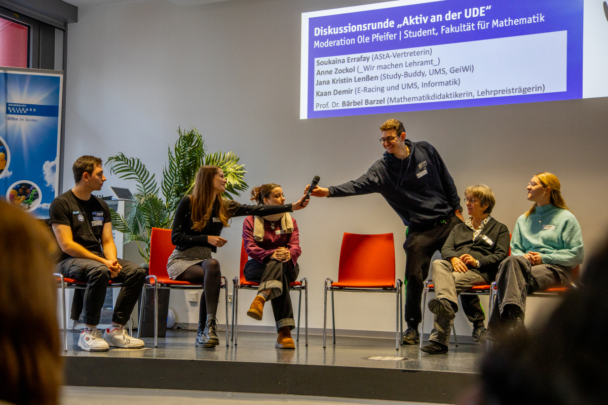 Alle Teilnehmenden hatten 2025 die Gelegenheit, aktive Studierende kennenzulernen, Engagement im Kleinen und Großen zu erleben und gemeinsam zu überlegen, was ein angenehmes Miteinander an der UDE ausmacht. Ein zentraler Programmpunkt war wie immer der Fotowettbewerb, diesmal unter dem Titel „Was ich an meiner UDE liebe!“. Die Finalfotos wurden präsentiert, diskutiert und zum Abschluss wurden unter den anwesenden Finalist:innen die Gewinner:innen der drei iPads (gesponsort vom Förderverein der UDE) ausgelost.