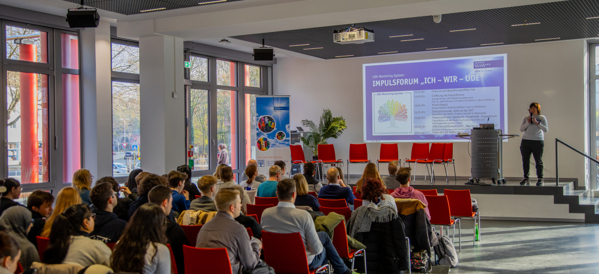 Die Impulsforen im UDE-Mentoring-System bieten Raum für Austausch, neue Perspektiven und gemeinsames Lernen. Studierende und Mitarbeitende kommen zusammen, um über Themen zu sprechen, die den Campus bewegen, Erfahrungen zu teilen und Ideen für ein gutes Miteinander zu entwickeln.
