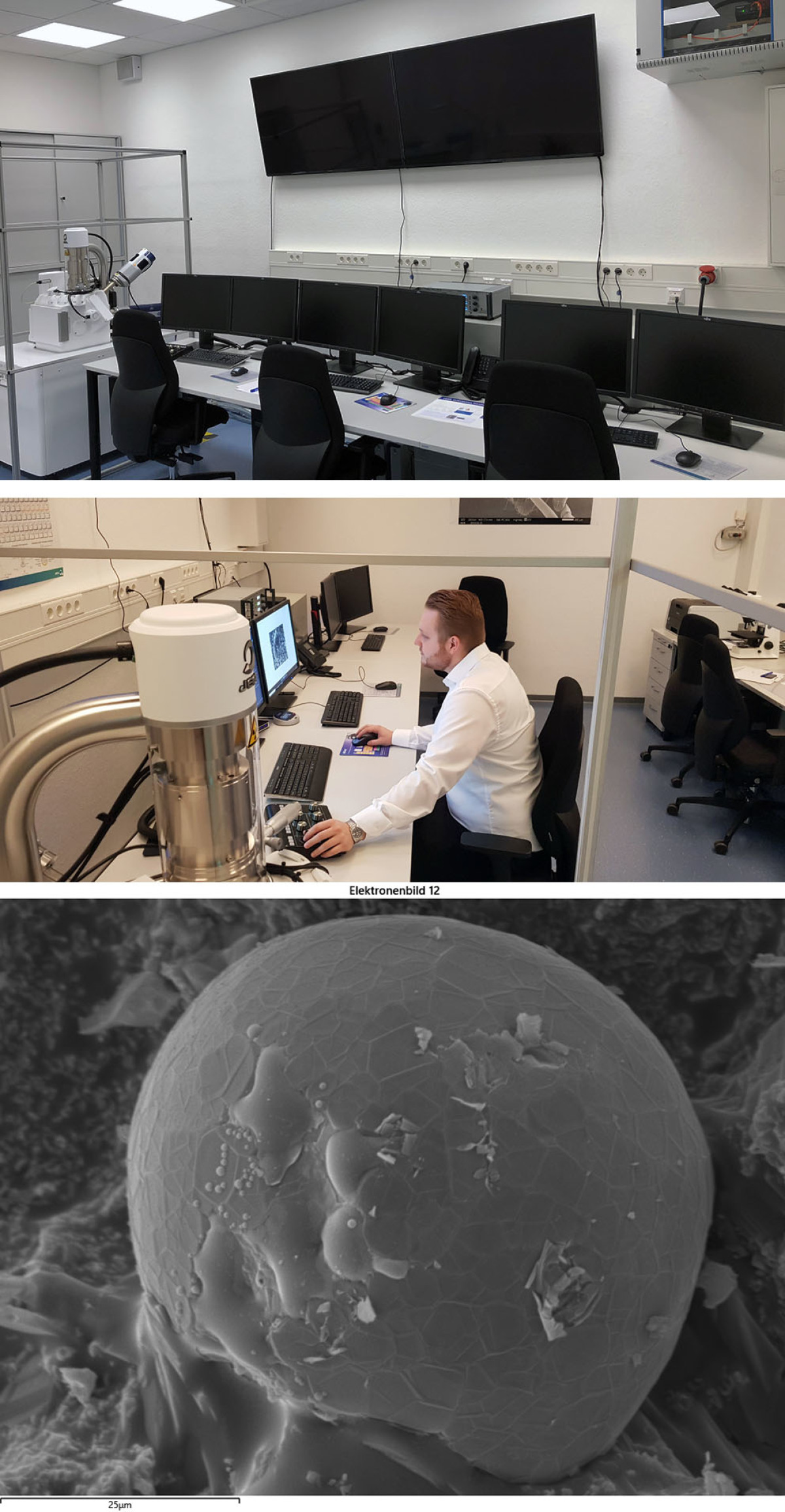 Die Abbildung erfolgt mittels Sekundärelektronen- oder Rückstreudetektor, bzw. Kombinationen aus beiden.