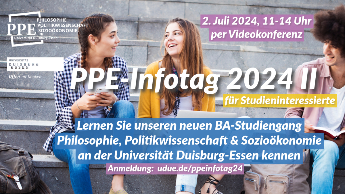 Ab Wintersemester 2024/25 startet an der Uni Duisburg-Essen ein neuer Bachelor-Studiengang PPE (Philosophy, Politics & Economics).