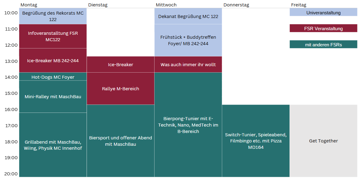 Falls ihr es zeitlich nicht schafft zur Orientierungswoche zu kommen, haben wir alle relevanten Informationen in dem folgenden Dokument zusammengetragen.