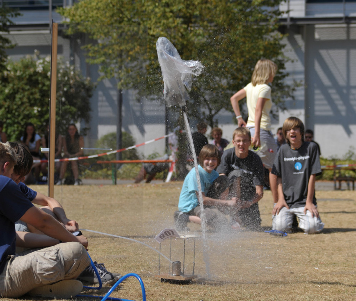 Top oder Flop? Das ist die Frage, wenn ab dem 2. Juli das Finale von freestyle physics ausgetragen wird. Etwa 2.000 Mädchen und Jungen zeigen beim großen Wettbewerb der Universität Duisburg-Essen (UDE), wie sie eine von fünf kniffligen Aufgaben gelöst haben. Zündet die Wasserrakete, läuft die Kettenreaktion wie am Schnürchen, oder haut der Freistoßautomat das Runde so oft es geht ins Eckige?