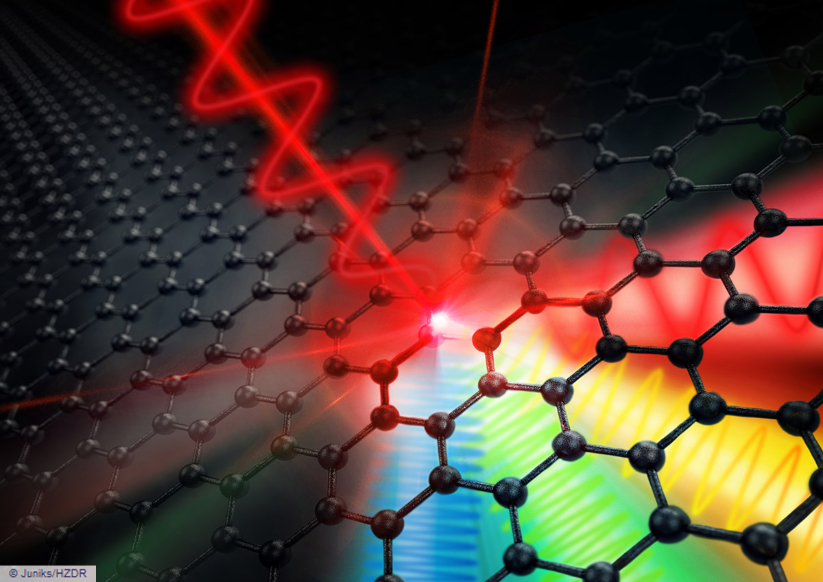 Graphen ist hauchdünn und gilt als vielversprechendes Material für die Nanoelektronik. Theoretisch soll es bis zu tausendmal schnellere Taktraten erlauben als heutige Siliziumtransistoren. Tatsächlich kann Graphen elektronische Signale mit Frequenzen im Gigahertz-Bereich extrem effizient in Signale mit einer vielfach höheren Frequenz umwandeln. Das hat ein Wissenschaftlerteam von der Universität Duisburg-Essen (UDE), dem Helmholtz-Zentrum Dresden-Rossendorf (HZDR), und dem Max-Planck-Institut für Polymerforschung (MPI-P) nun erstmals gezeigt. Ihre Ergebnisse stellen die Forscher, darunter UDE-Prof. Dmitry Turchinovich, im Fachjournal Nature vor.