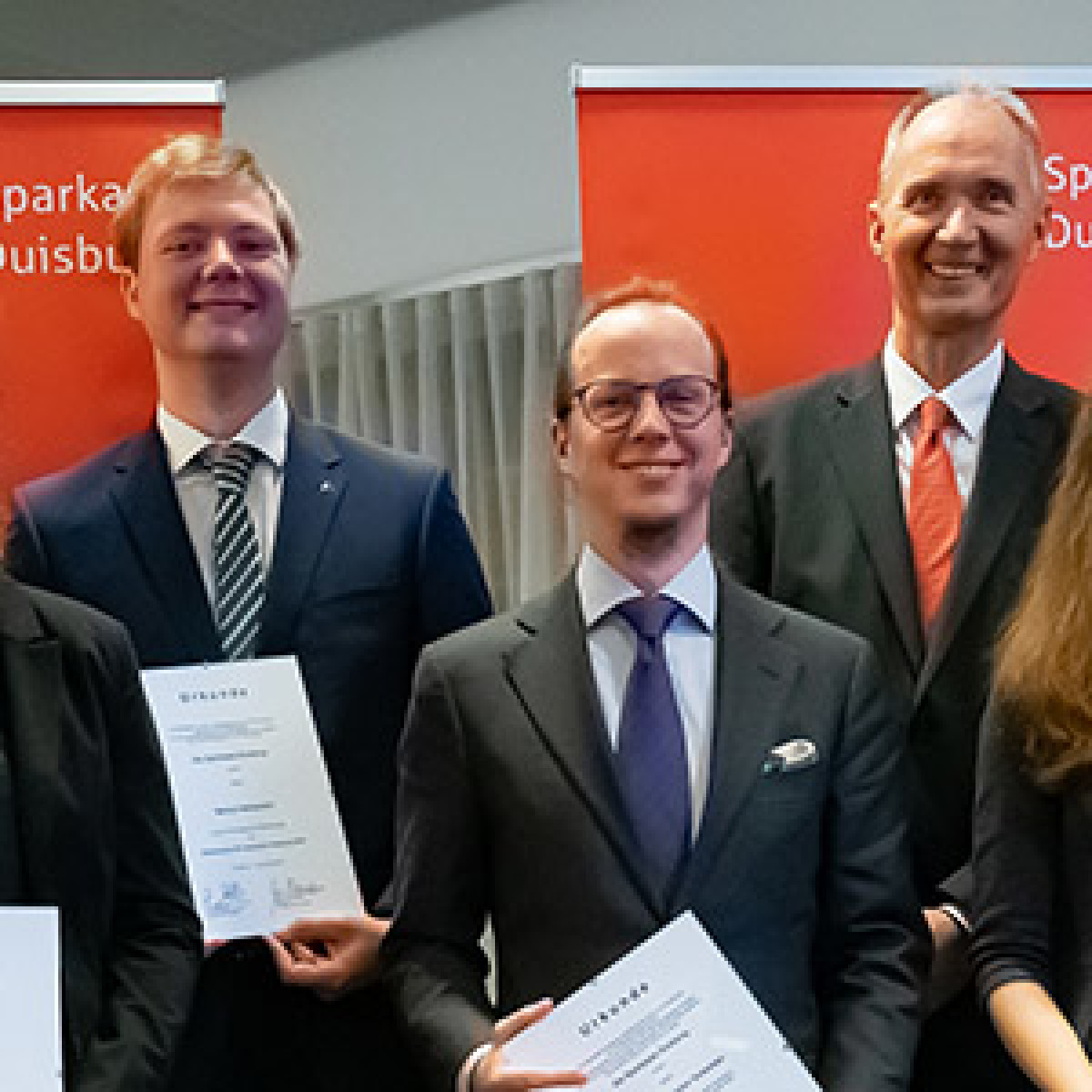 Für seine besondere Studienleistung wurde Markus Heckschen (AG Sothmann) geehrt. Er erhielt ein Preisgeld von 1.000 €. Die Preise wurden in einer Feierstunde vom Vorstandsvorsitzenden der Sparkasse Duisburg, Dr. Joachim Bonn und vom Rektor der Universität Duisburg-Essen, Prof. Dr. Ulrich Radtke übergeben.
