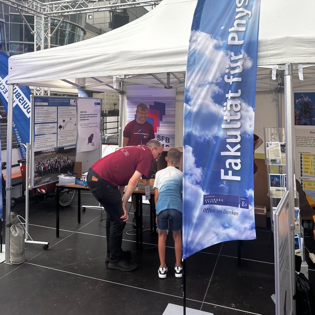 Wer nach dem Staunen selbst ins Studium starten möchte, findet im Foyer Ansprechpartner:innen zu Physik, Lehramt Physik und Energy Science. Lehrende und Studierende berichten aus ihrem Alltag, erklären das Buddy-System und beantworten Fragen zu Bewerbung, Studienverlauf und Berufsperspektiven – ganz ohne Formeln, aber mit viel Begeisterung.
