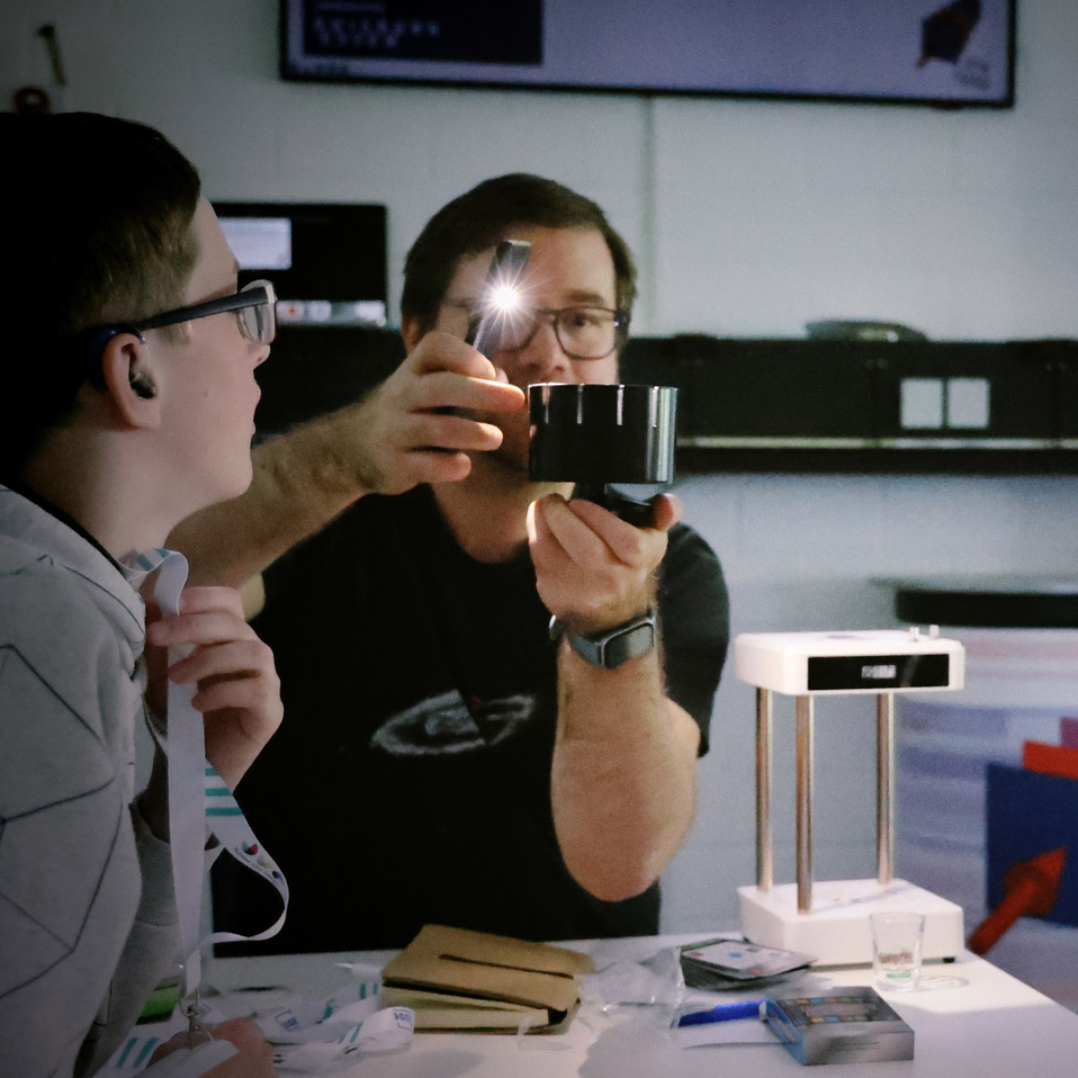 Mit Experimenten, Laborführungen und Vorträgen wecken die Forschenden der UDE Neugier und Begeisterung für Physik: Im „schnellsten Labor der Welt“, dem Schullabor des Sonderforschungsbereichs 1242, wird Licht zum Werkzeug – Laserstrahlen stoppen die Zeit, Lichtblitze messen Sekundenbruchteile, und im Laserlabyrinth darf mitgespielt werden. Darüber hinaus können Kinder ab zehn Jahren selbst handwerklich aktiv werden: Sie greifen zu Kabel, Draht und Schraubenzieher und verwandeln eine einfache Bürste im Handumdrehen in ein kleines Rennfahrzeug oder bauen ein solarbetriebenes Spielzeugauto.