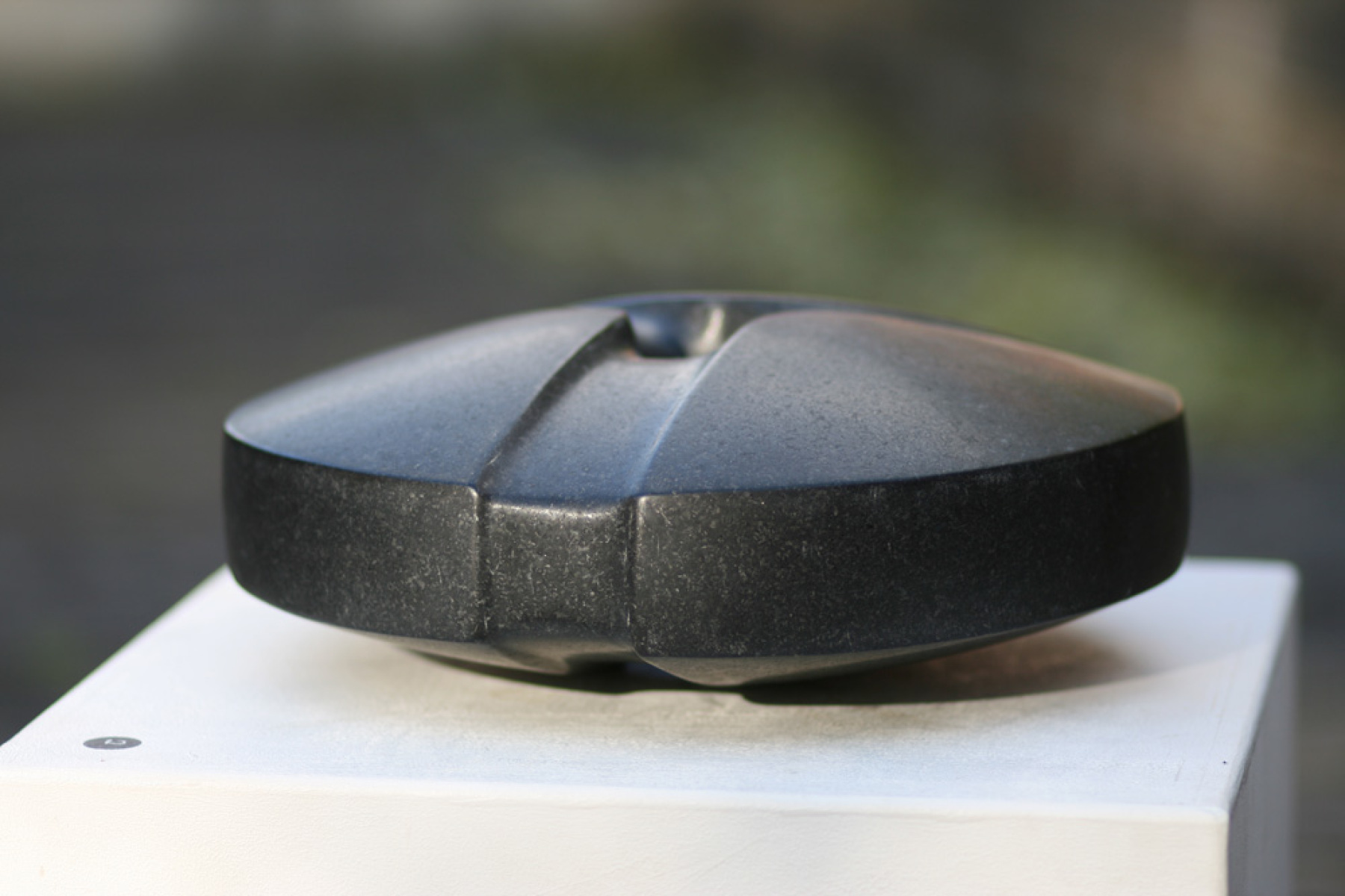 Die Arbeiten umfassen Videos, Skulpturen, Zeichnungen und Fotografien. Für ihre Werke haben sich die Kunstschaffenden in den Laboren der UDE-Quantenoptik und durch Gespräche mit den Wissenschaftler:innen inspirieren lassen. Barbara Koxholt etwa zeigt Fotografien von ganz alltäglichen Dingen und Orten, in denen sich „Doppelspalten“ finden. Damit spielt sie augenzwinkernd auf das berühmte Experiment an, das zeigt, dass Licht sich wie eine Welle verhält. Dagegen greift Andreas Reichert mit seiner Skulptur „Granitscheibe“ (s. Bild) die Form eines Orbitals in einem Atom auf. Während man früher dachte, Elektronen kreisen in festen Bahnen um die Atomkerne, weiß man heute: Sie halten sich in bestimmten Bereichen mit einer gewissen Wahrscheinlichkeit auf.