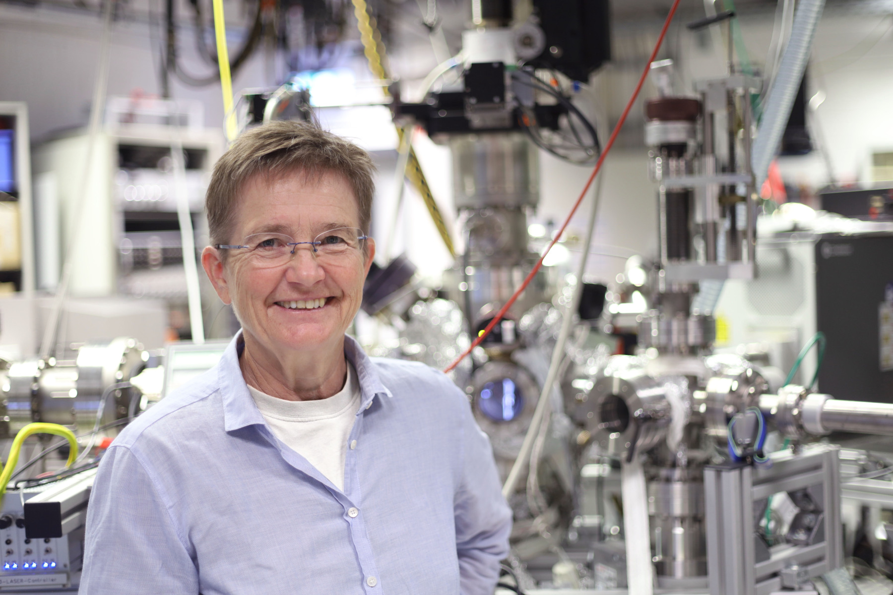 „Wird das Licht eingeschaltet, verändert sich das Material schlagartig: Der elektrische Widerstand sinkt um bis zu ein Hunderttausendfaches – die Probe leitet plötzlich rund 100.000-mal besser“, erklärt Pentcheva. Möglich macht das ein winziges elektrisches Feld an der Grenzfläche, das die durch UV-Licht freigesetzten Elektronen wie auf einer unsichtbaren Schiene in einer hauchdünnen Schicht sammelt. Dort können sie sich besonders leicht bewegen und bilden das leitfähige Elektronengas. Sobald das Licht ausgeschaltet wird, verschwindet dieser Zustand wieder vollständig – das Material kehrt in seinen Ausgangszustand zurück.