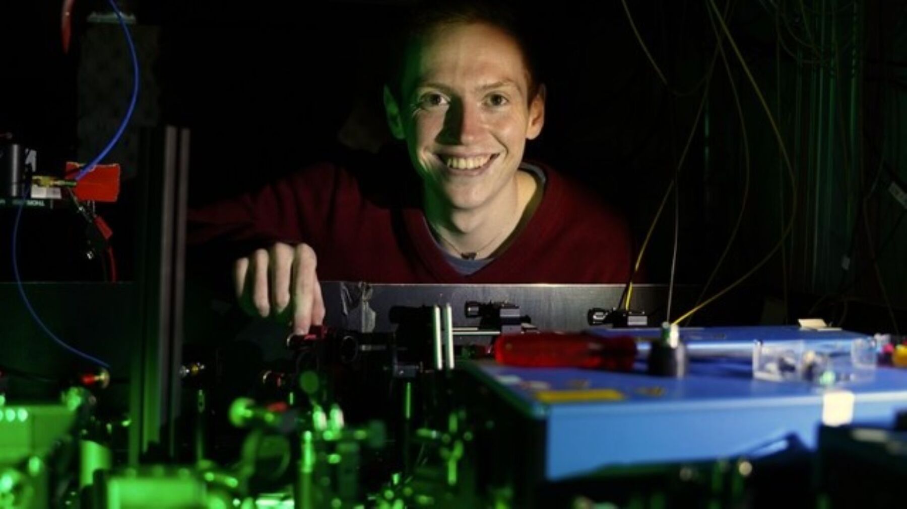 Im Bild: Die Arbeitgruppen (hier Doktorand Hendrik Mannel) erforschten mithilfe von Laserspektroskopie, wie Rauschen den Tunneleffekt beeinflusst.