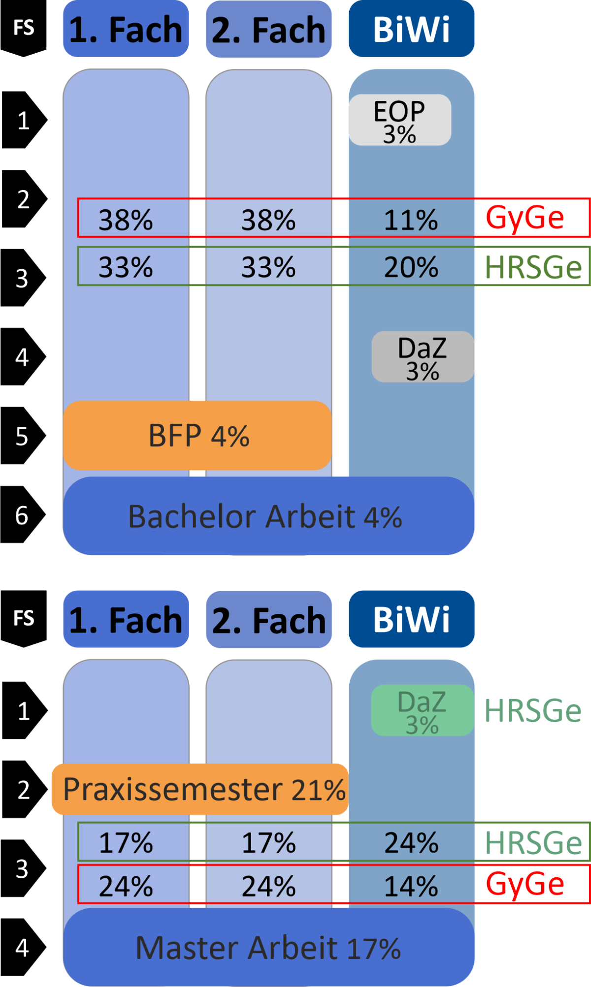 - For the teaching profession at Haupt- Real- und Gesamtschulen (LHRGe) and for the teaching profession at Gymnasien und Gesamtschulen (LGyGe), physics can be combined as a core subject with all other subjects.