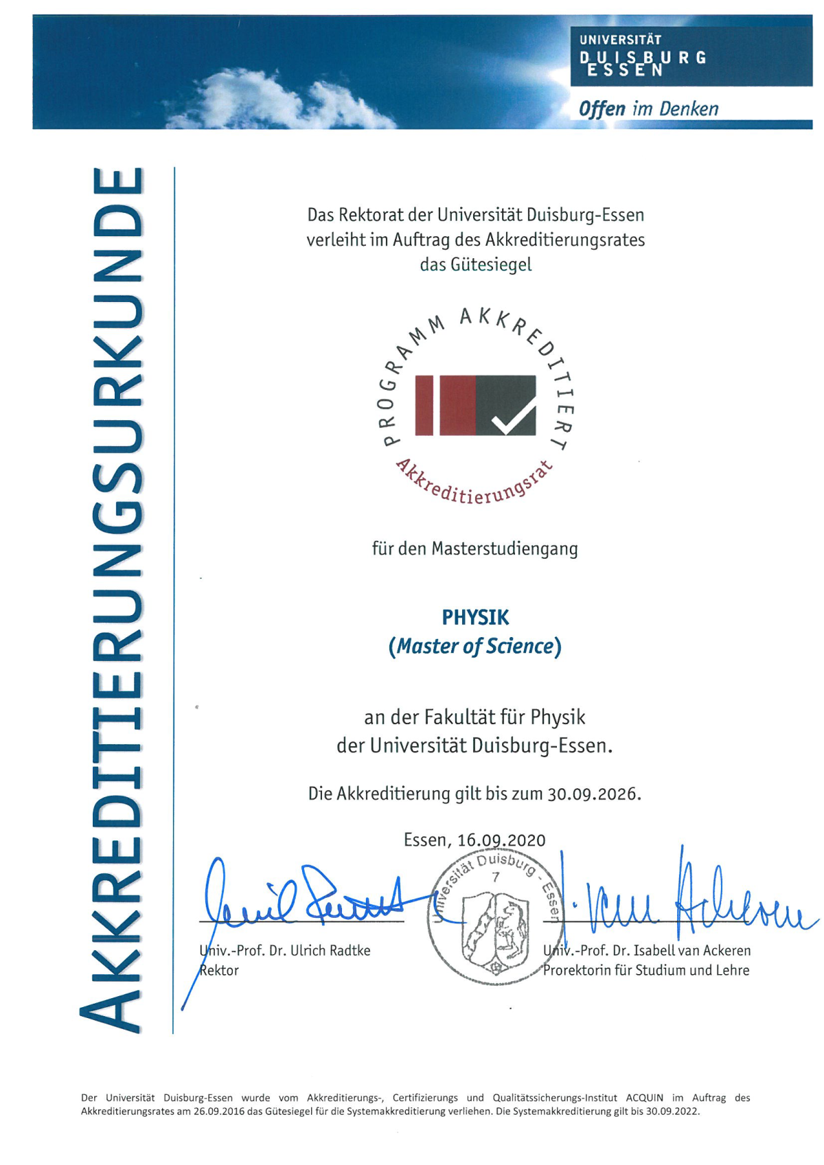 Informationen für alle, die Interesse an einem Physikstudium an der Universität Duisburg-Essen haben oder überlegen, ob für sie ein Physikstudium in Betracht kommt.