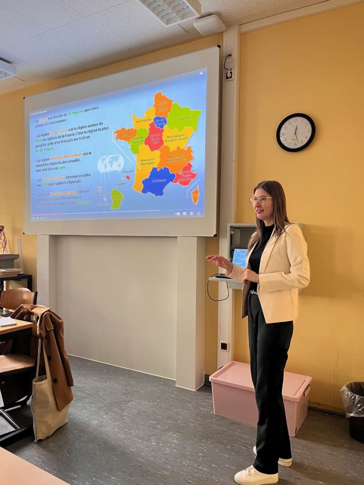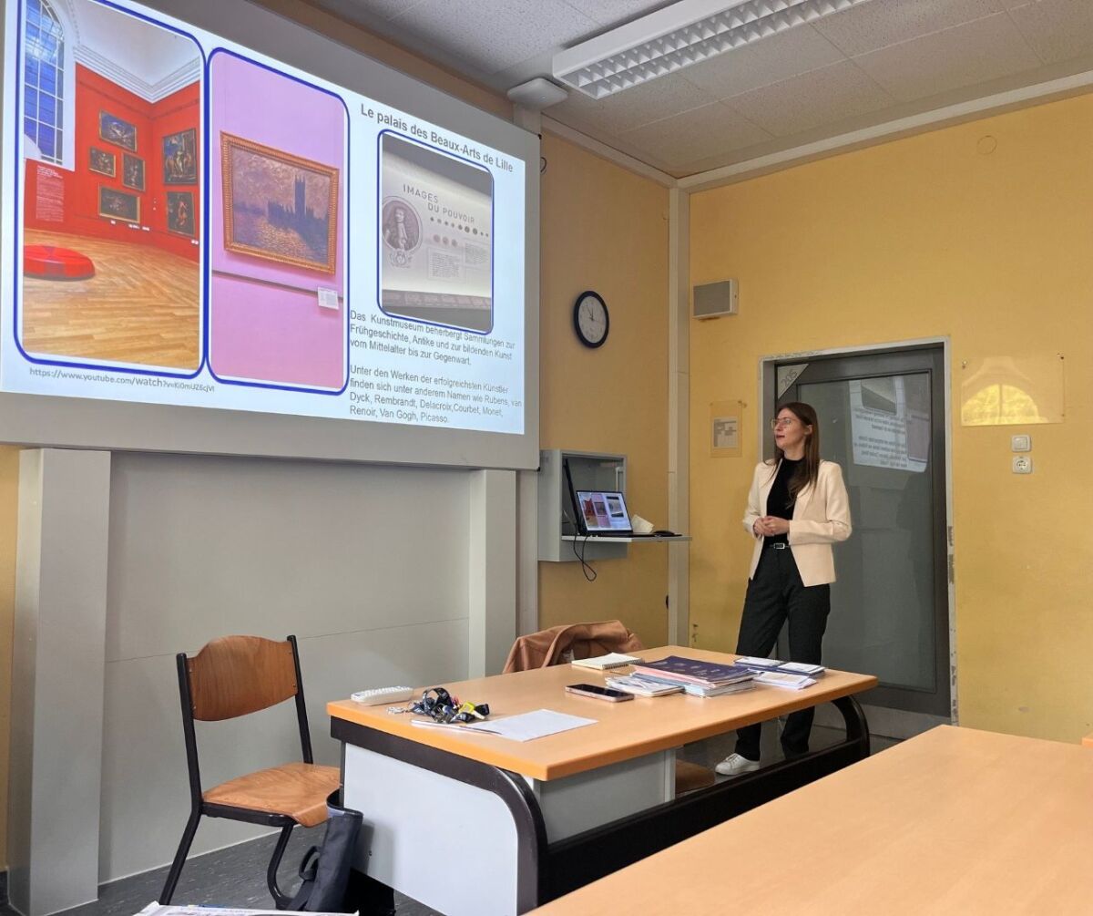 Am 10. Oktober 2025 hatten wir die Gelegenheit, das PEF-Programm sowie die bestehende Kooperation der Universität mit dem Maria-Wächter-Gymnasium in Essen vorzustellen. Vladlena Zverkova präsentierte die Stadt Lille in Form eines unterhaltsamen Quiz, das sie anschließend um Informationen zu den französischen Regionen erweiterte. Herr Cosfeld und Frau Egin (StRef’) haben uns sehr herzlich empfangen. Vielen Dank!