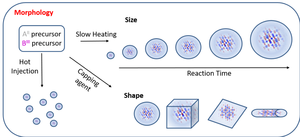 Project C3 establishes synthesis protocols for structurally and morphologically well-defined spinel-type mixed-metal oxide AIIBIIIO4 nanoparticles (e.g., A = Co2+; B = Fe3+) based on thermal decomposition of molecular precursor solutions.