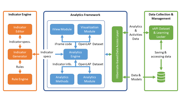 OpenLAP provides a detailed technical OLA architecture with a concrete implementation of all its components, seamlessly integrated into a platform. It encompasses different stakeholders associated through a common interest in learning analytics but with diverse needs and objectives, a wide range of data coming from various learning environments and contexts, as well as multiple infrastructures and methods that enable to draw value from data in order to gain insight into learning processes.